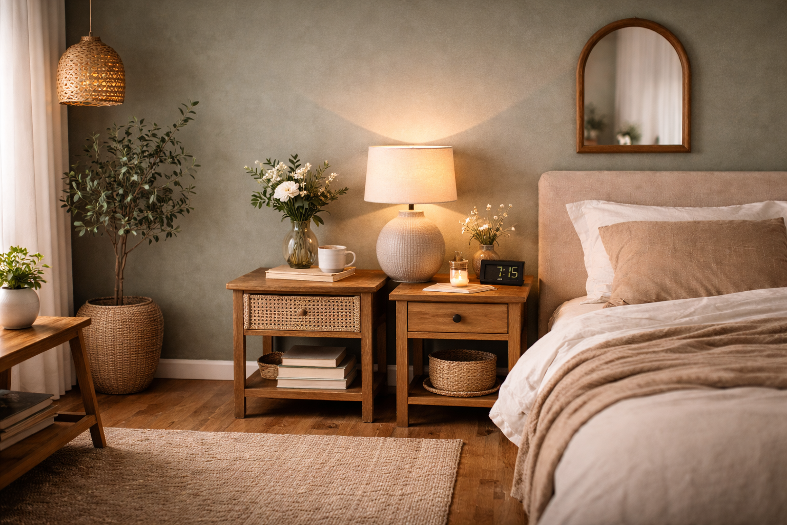 Nos tables de chevet transforment ce coin nuit en espace apaisant.